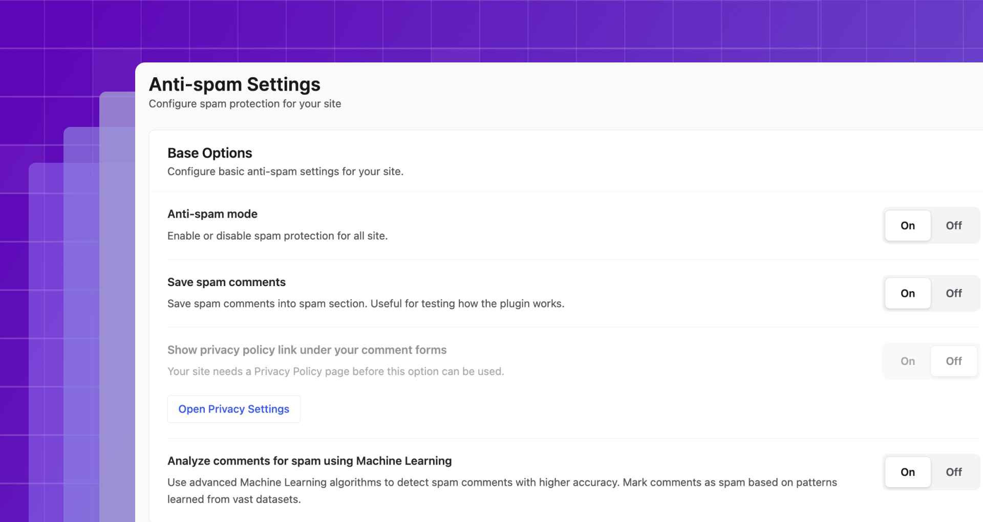 Detailed spam processing logs: View logs of processed comments to understand how spam filtering works and monitor spam activity trends.