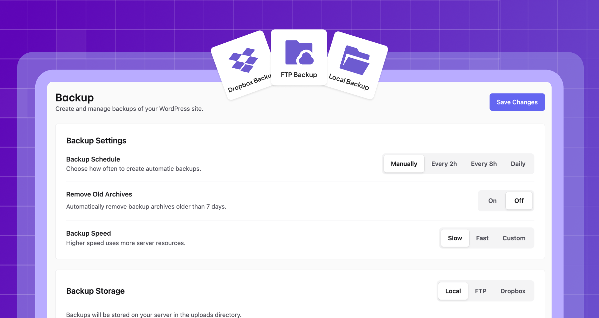 Adjustable Backup Performance: Control backup speed to balance performance and server resource usage.