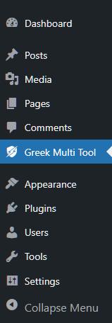 1. Navigate to “Greek Multi Tool” in your WordPress admin sidebar.