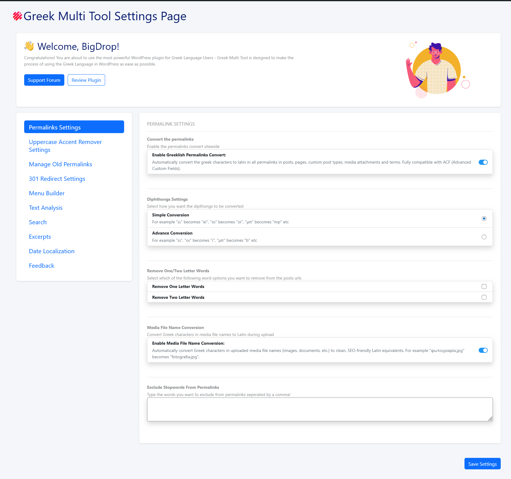 - Automatic Greek to Latin URL Conversion: Transform Greek characters in Permalinks to clean Latin characters.