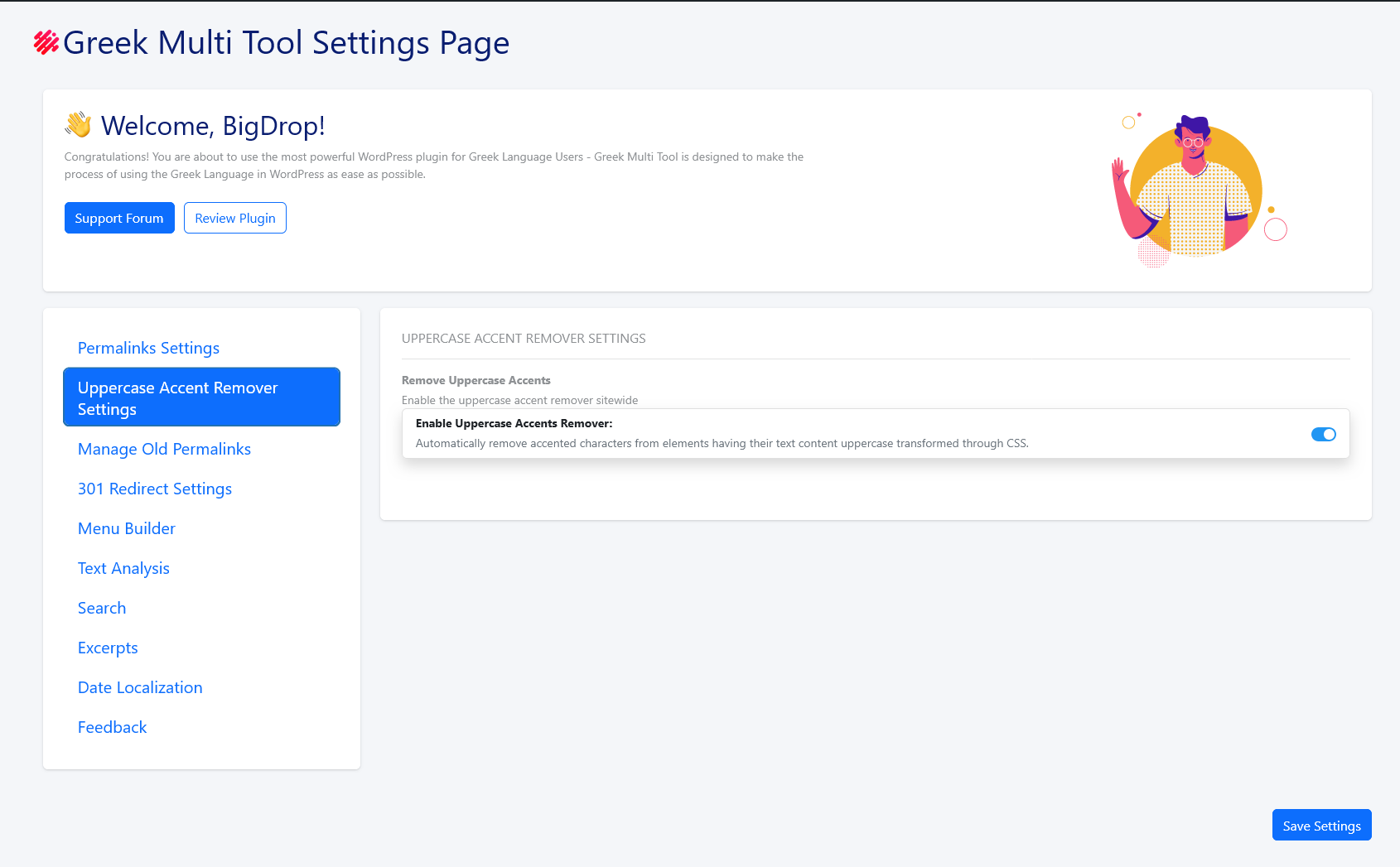 2. Toggle on/off individual features to match your exact needs (e.g., enable only Greeklish Slugs).
