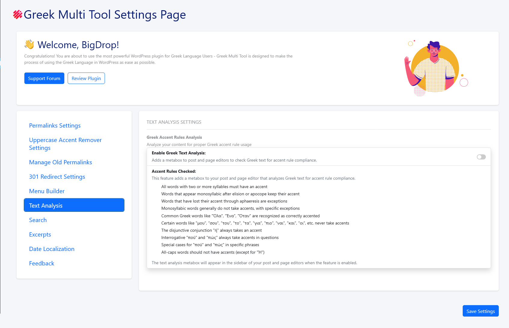 - Greek Text Analysis: Check your content for proper Greek accent rules and linguistic correctness.