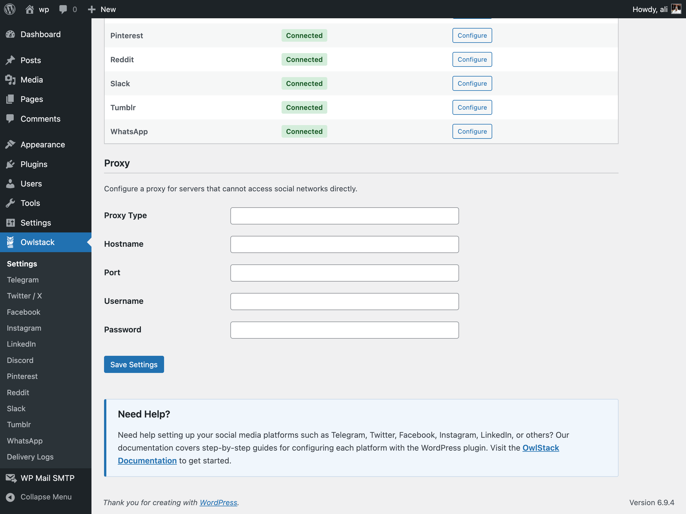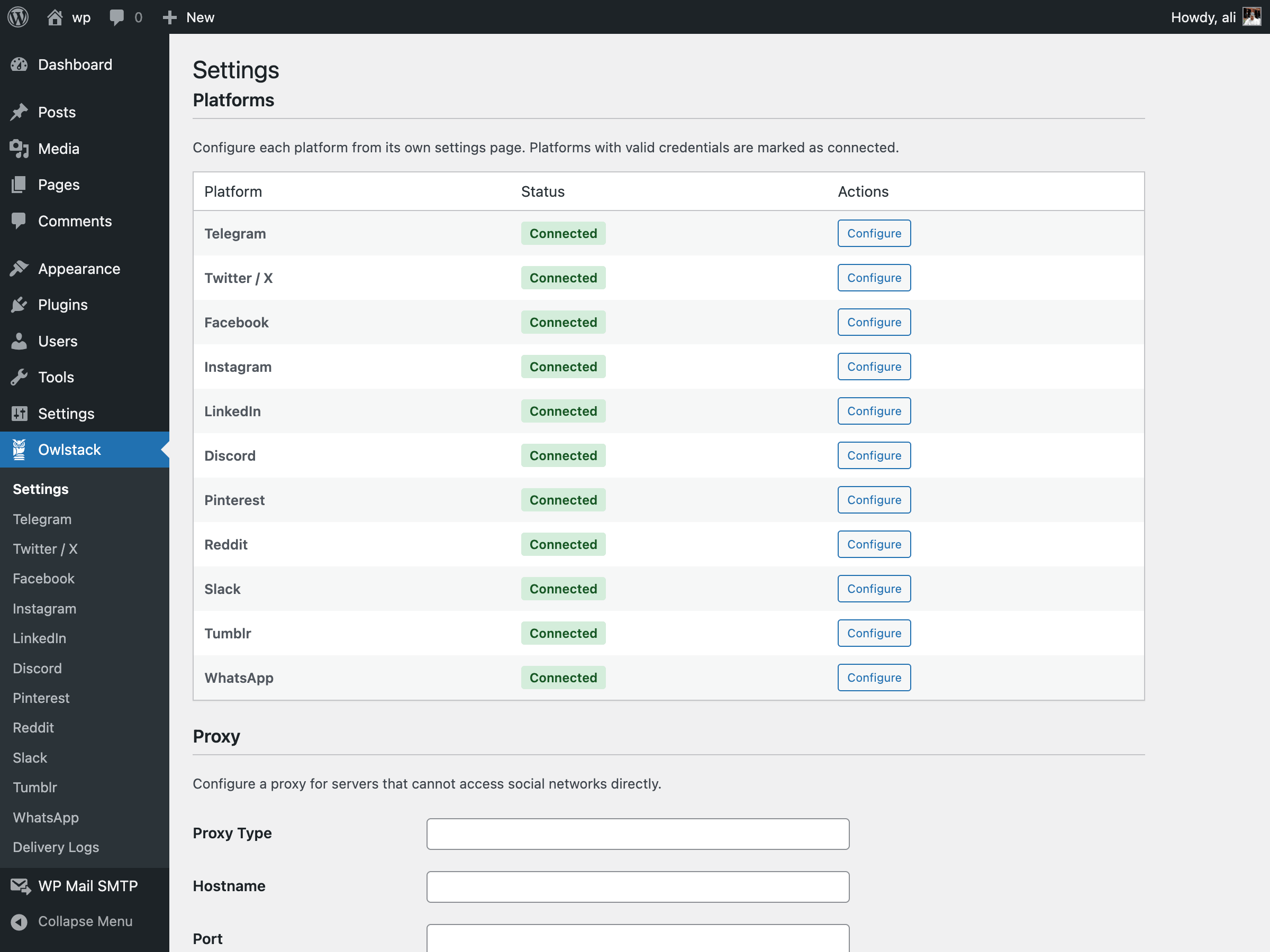 - Admin Settings Page — Configure platform credentials and proxy settings from a clean admin UI
