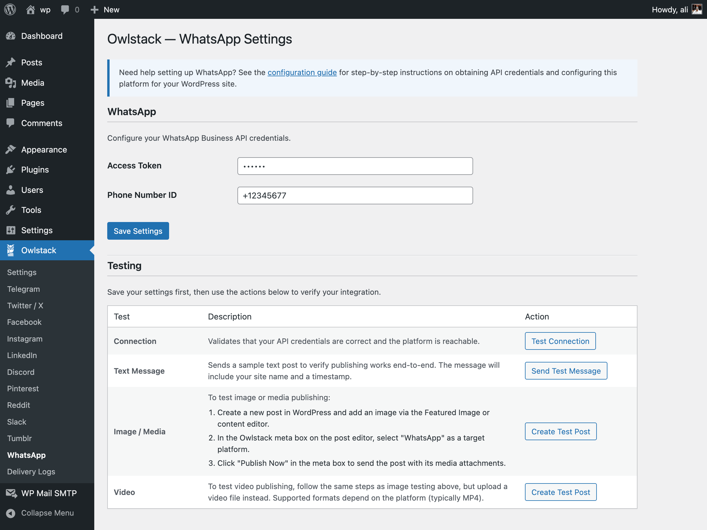 - WhatsApp: Set up WhatsApp Business API via Meta for Developers.