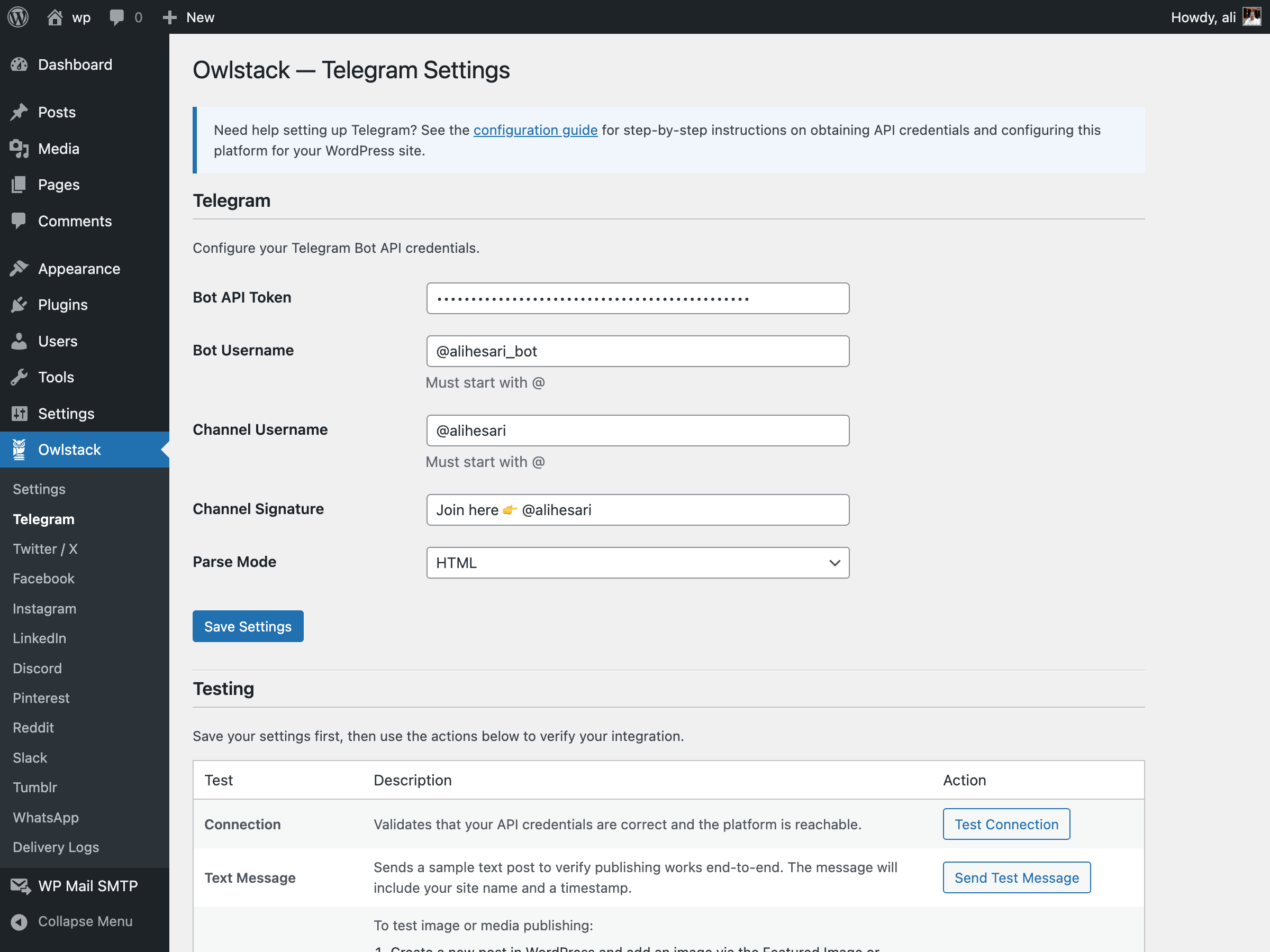owlstack()->telegram('Hello from WordPress!');