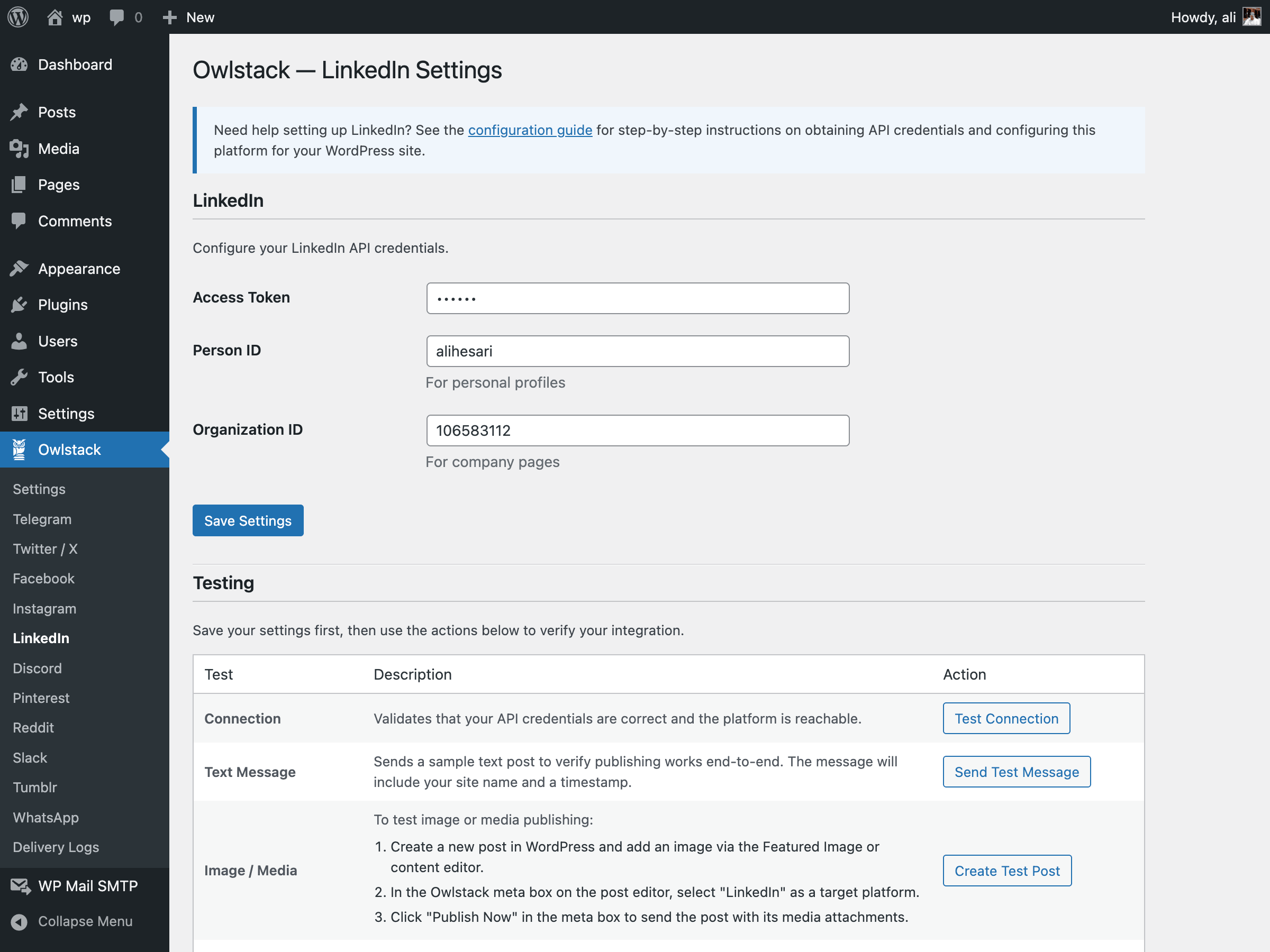 owlstack_post_publishedandowlstack_post_failedactions - Token Storage — Encrypted OAuth token storage via