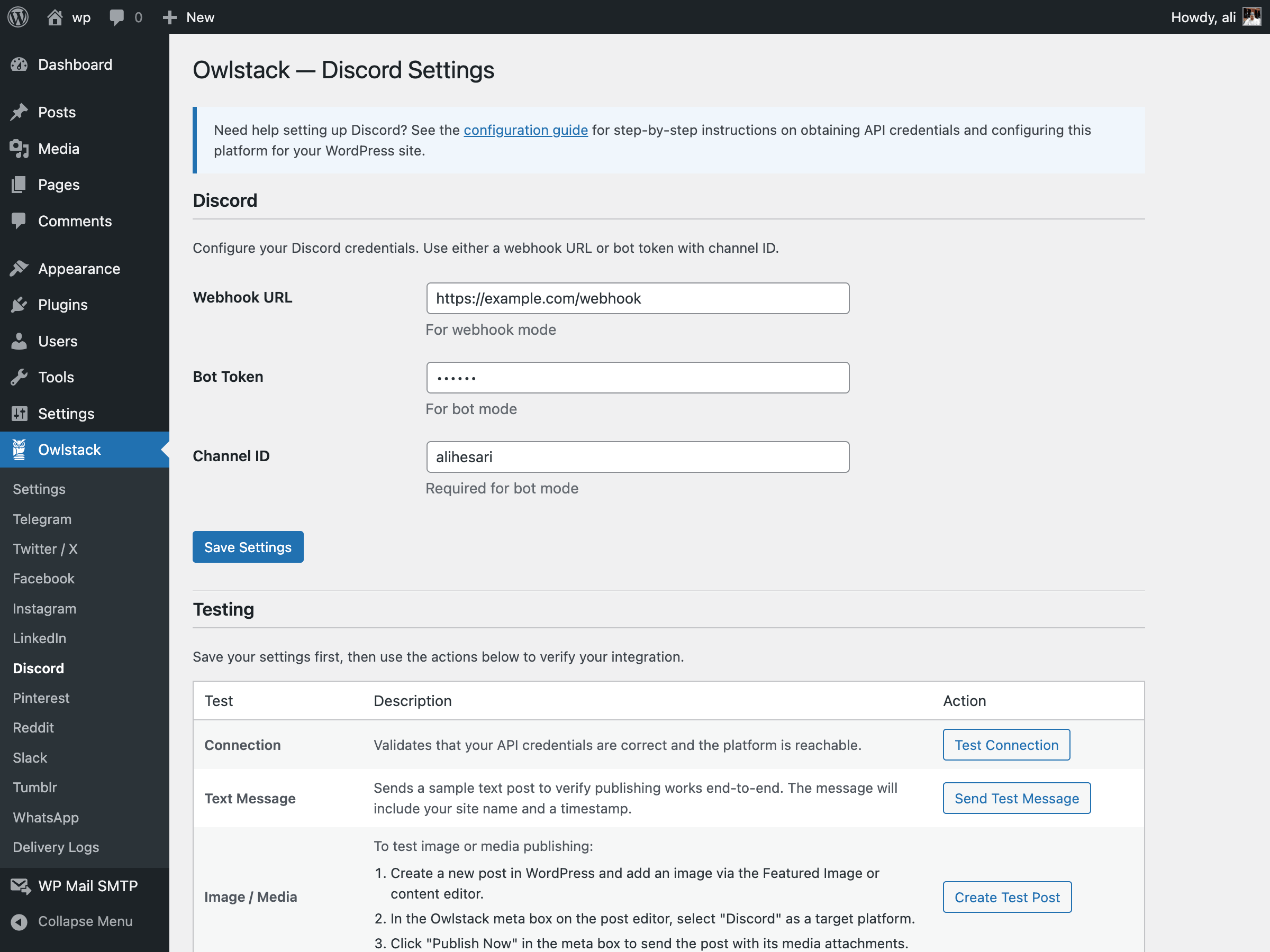 - Discord — Send posts to Discord channels via webhooks