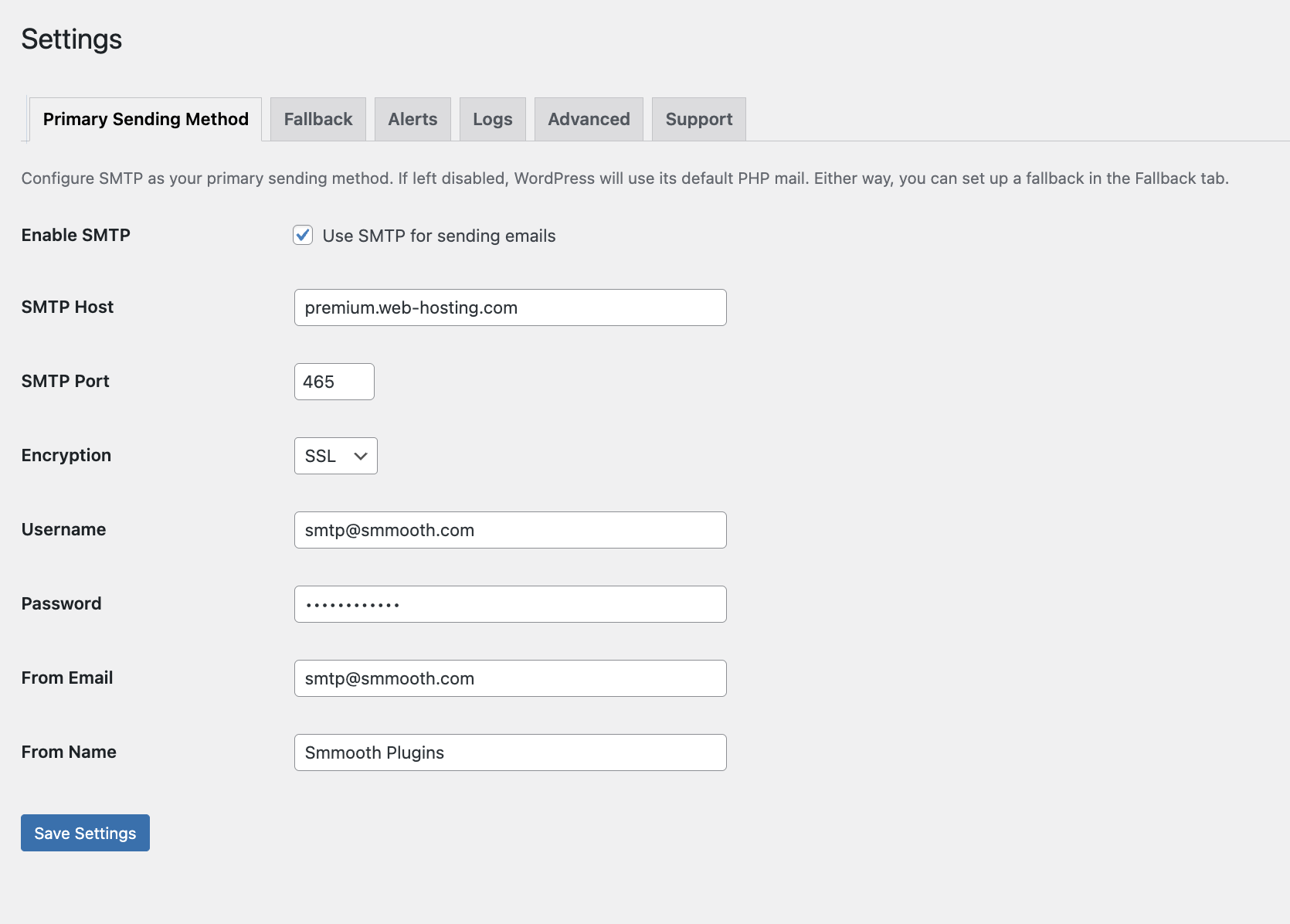 If the primary sending method fails, Smooth SMTP can automatically retry using a fallback. This works regardless of whether you’re using SMTP or WordPress’s default PHP mail as your primary.
