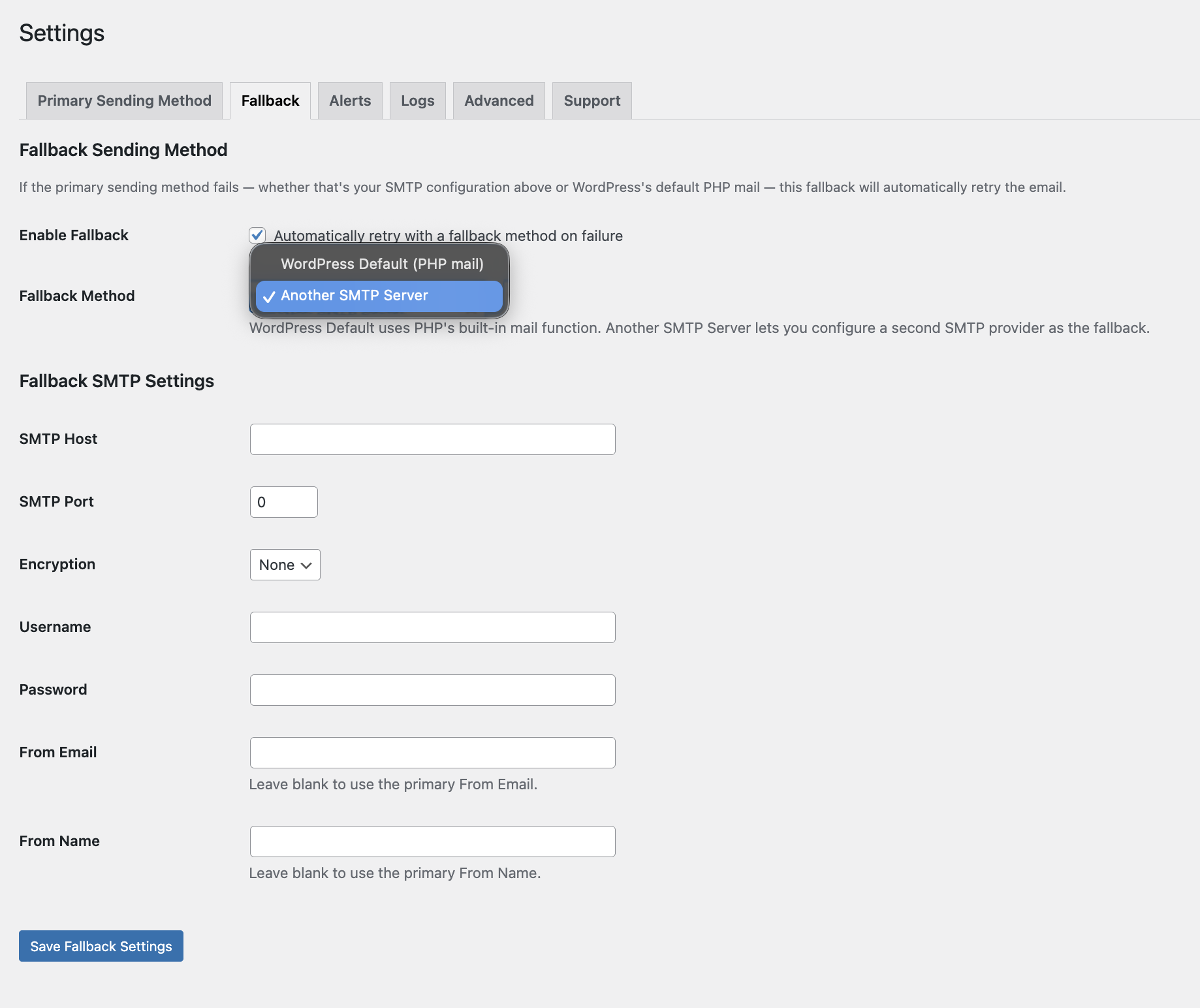 - Fallback to WordPress Default (PHP mail) or a second SMTP server