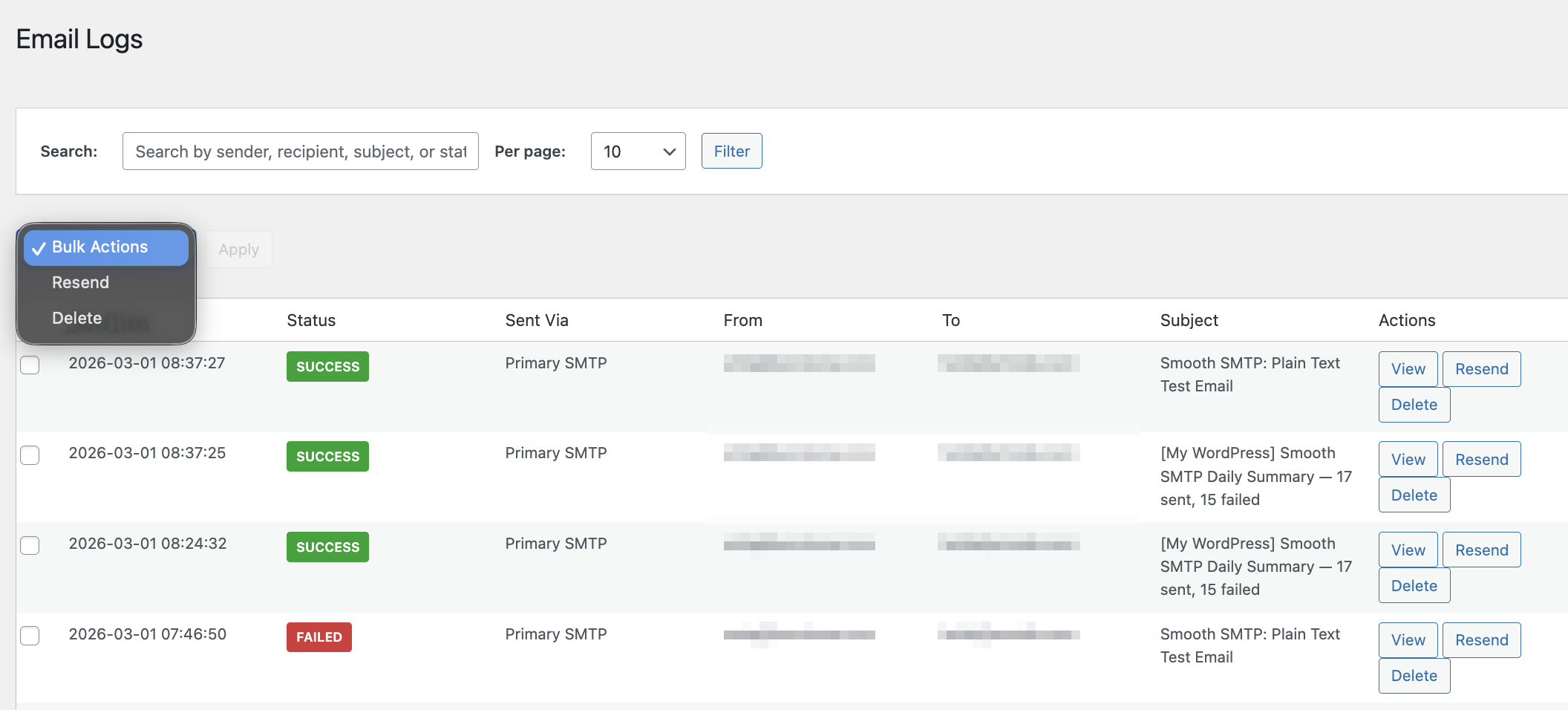 - Compatible with Post SMTP and WP Mail SMTP (Smooth SMTP acts as a fallback when another SMTP plugin is detected)