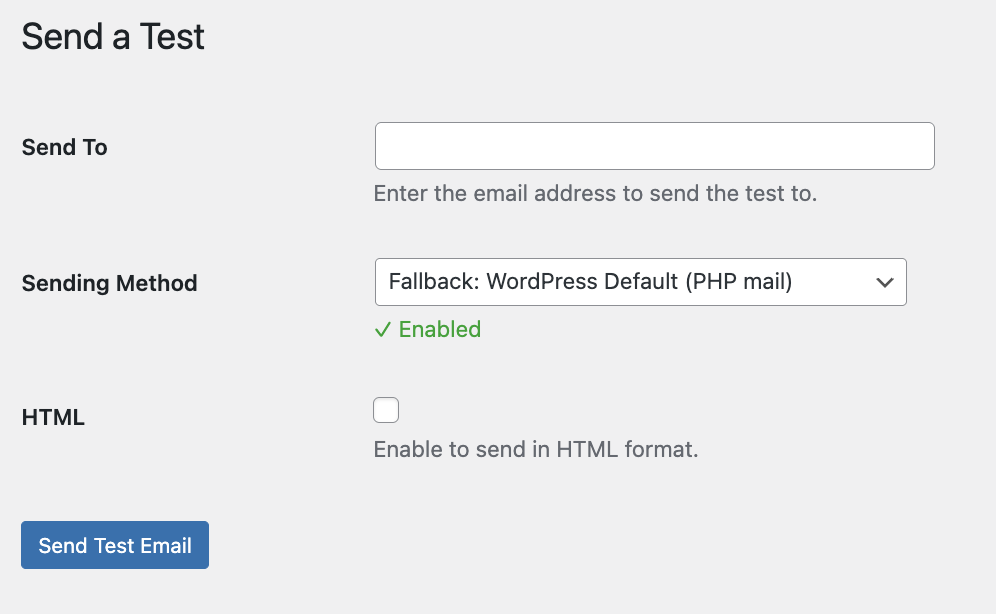 Configure any SMTP provider as your primary sending method. If you leave SMTP disabled, WordPress will continue using its default PHP mail — either way, all other features still work.